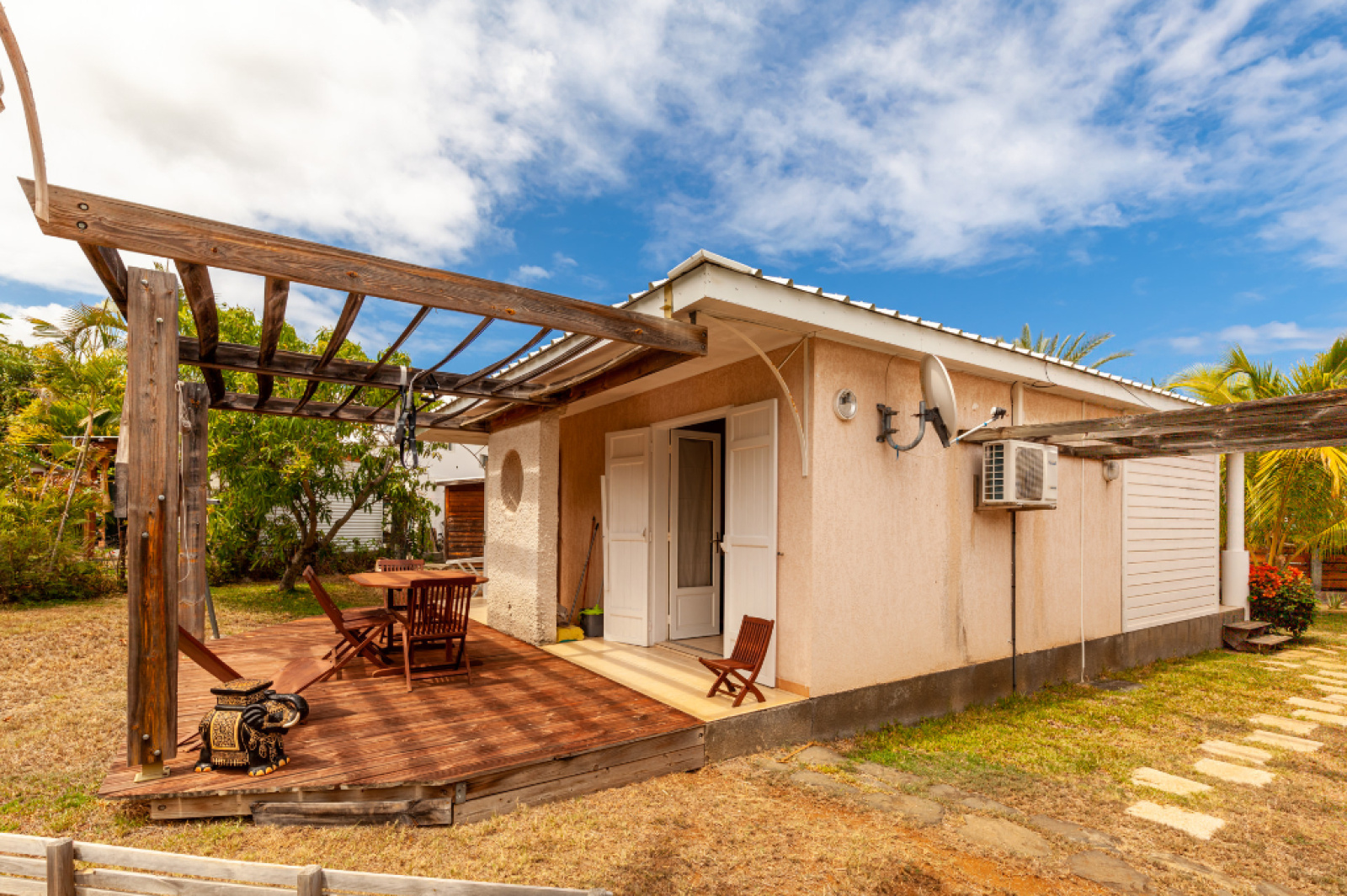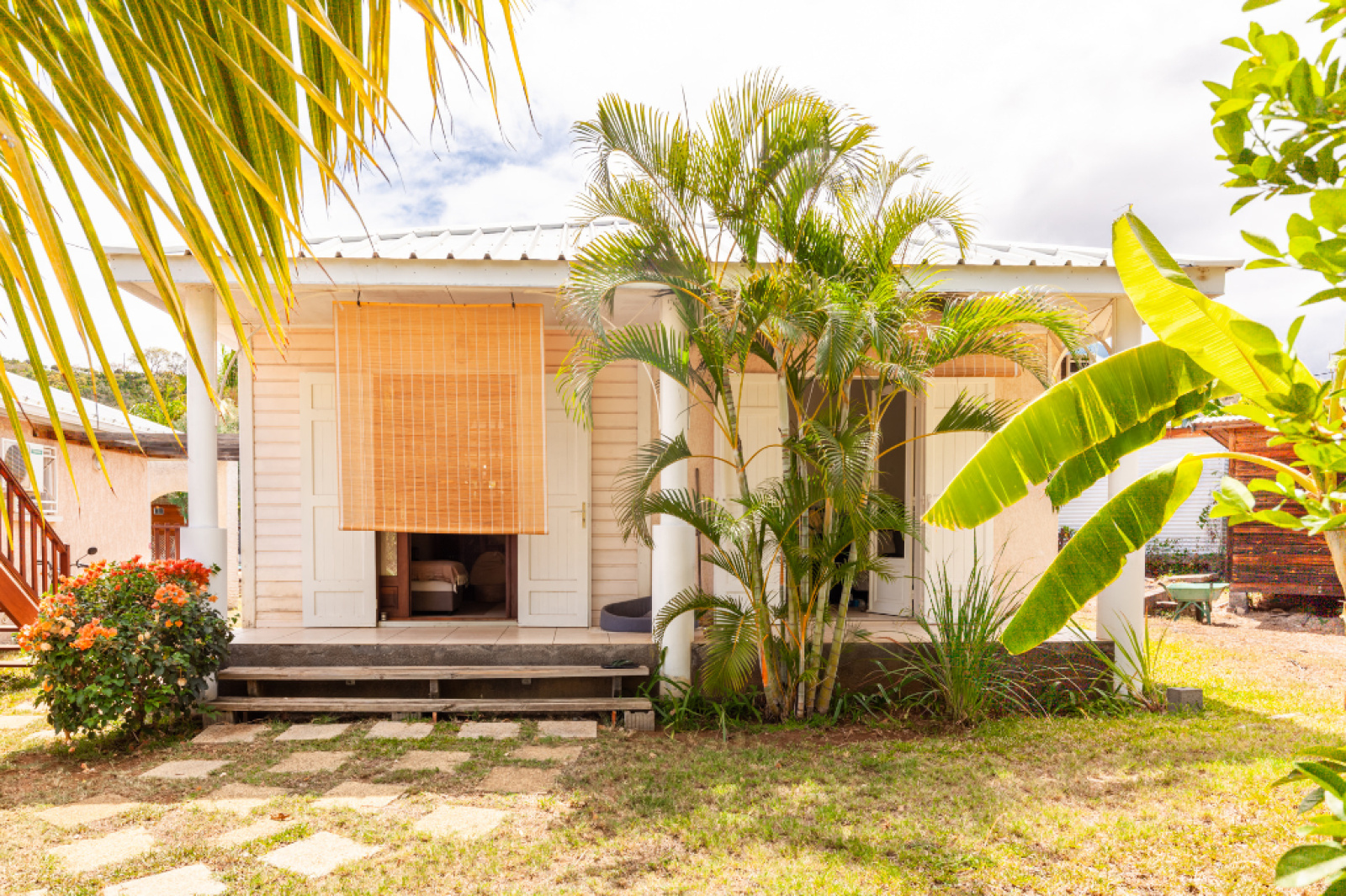 A Boucan Canot, dans le Lotissement Champagne, sur une belle parcelle plate et arborée, de 1108 m², à quelques minutes à pieds de la plage de Boucan Canot et à proximité de commodités, nous vous présentons ce bien où se trouve édifiées deux constructions de 1998, se composant d'une habitation principale de type F3 de 106 m² habitables où se trouve à l'étage un appartement indépendant de type F1 bis de 24 m² avec vue mer et une maison annexe de type F2/3 de plain pied de 54 m².